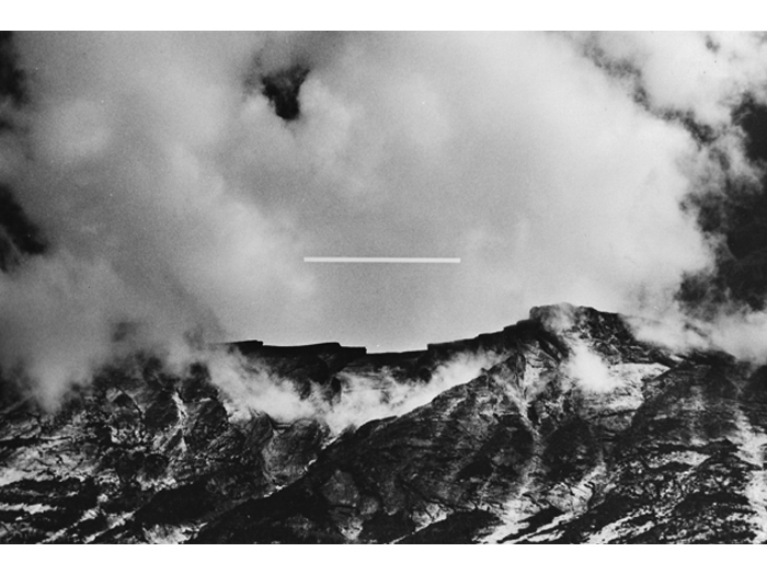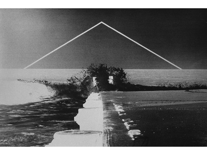 Realizing the superior impact of photography in creating an illusion to natural reality, he soon used photographs to achieve the images he sought. Over photographic images of landscapes, Greenly imposed abstract "energy" of apparently great scale, creating "intangible sculpture". Above these real, but generalized, poetic landscapes are "bars", clearly incorporeal, which set up an almost electrical tension or exchange of energy with the land below. Clearly, these works are part of the same search that led to the discovery of the Primary Transitional Symbol. Nature, space, energy, time, and spirit are united in each work to build an art form that is endlessly evocative and free from the struggles of the ego that created or perceives it."